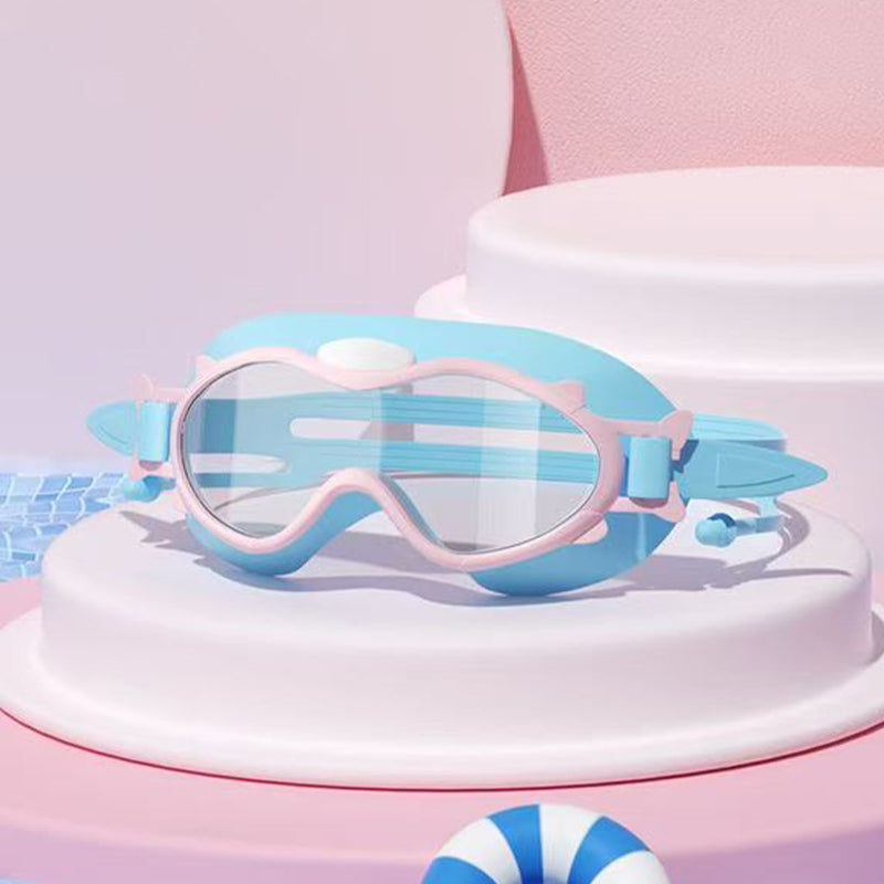 Kids Cartoon Theme Swimming Goggles - Anti-fog, Waterproof, Large Frame Soft Comfortable One-piece Ear Plug Goggles for Boys and Girls 4-16 years old Swimming Training Gear