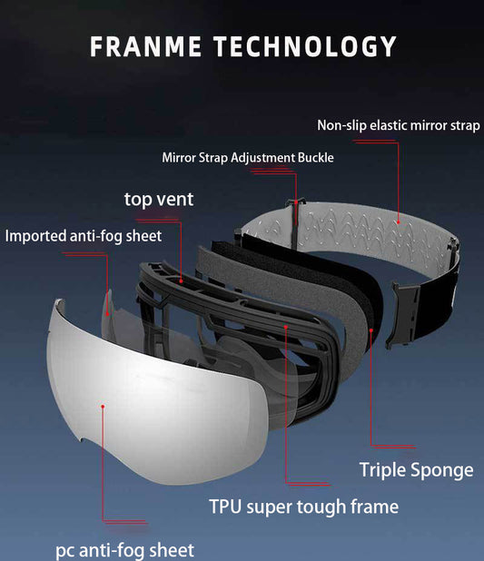 Adult double-layer anti-fog large spherical ski glasses winter mountaineering outdoor sports goggles anti-snow blindness UV sKI goggles